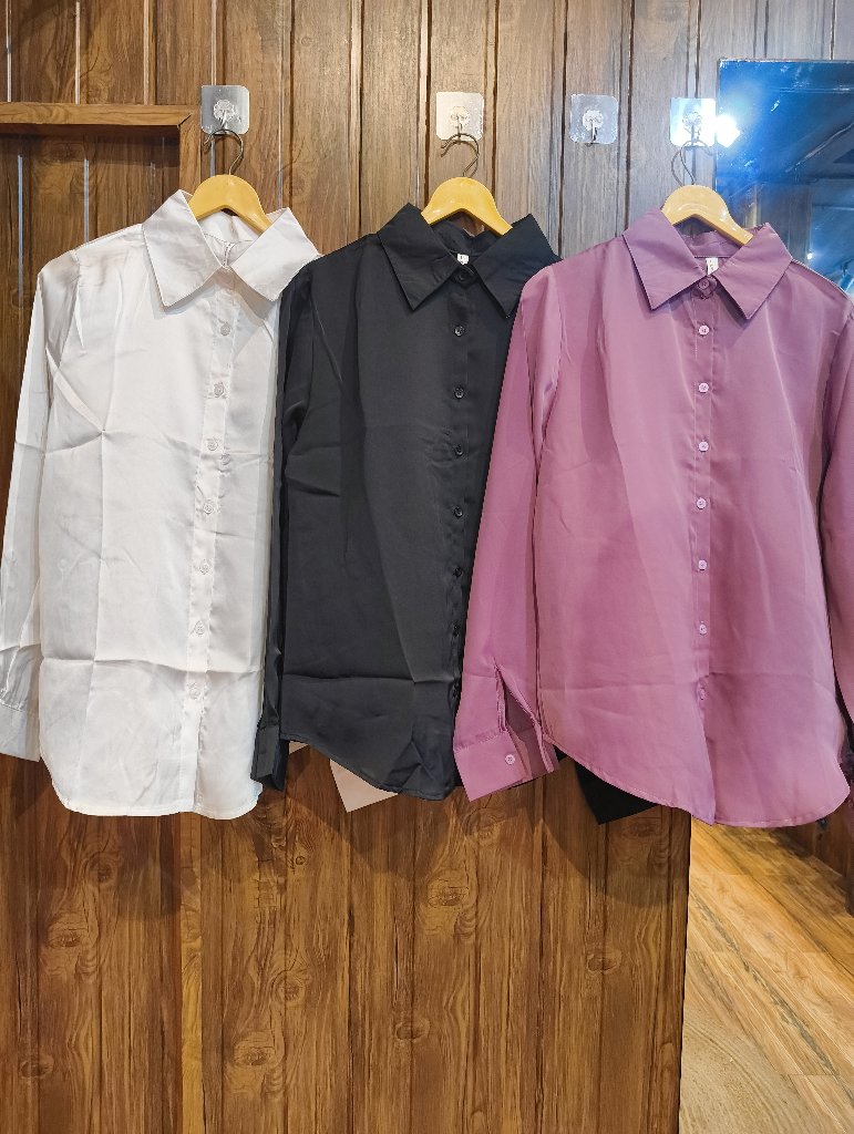 A stylish button-up shirt available in three colors: white, black, and pink. Features a classic collar and a regular fit, perfect for both casual and semi-formal occasions.