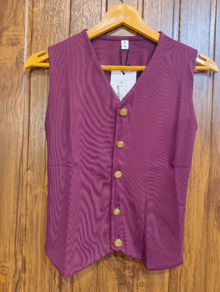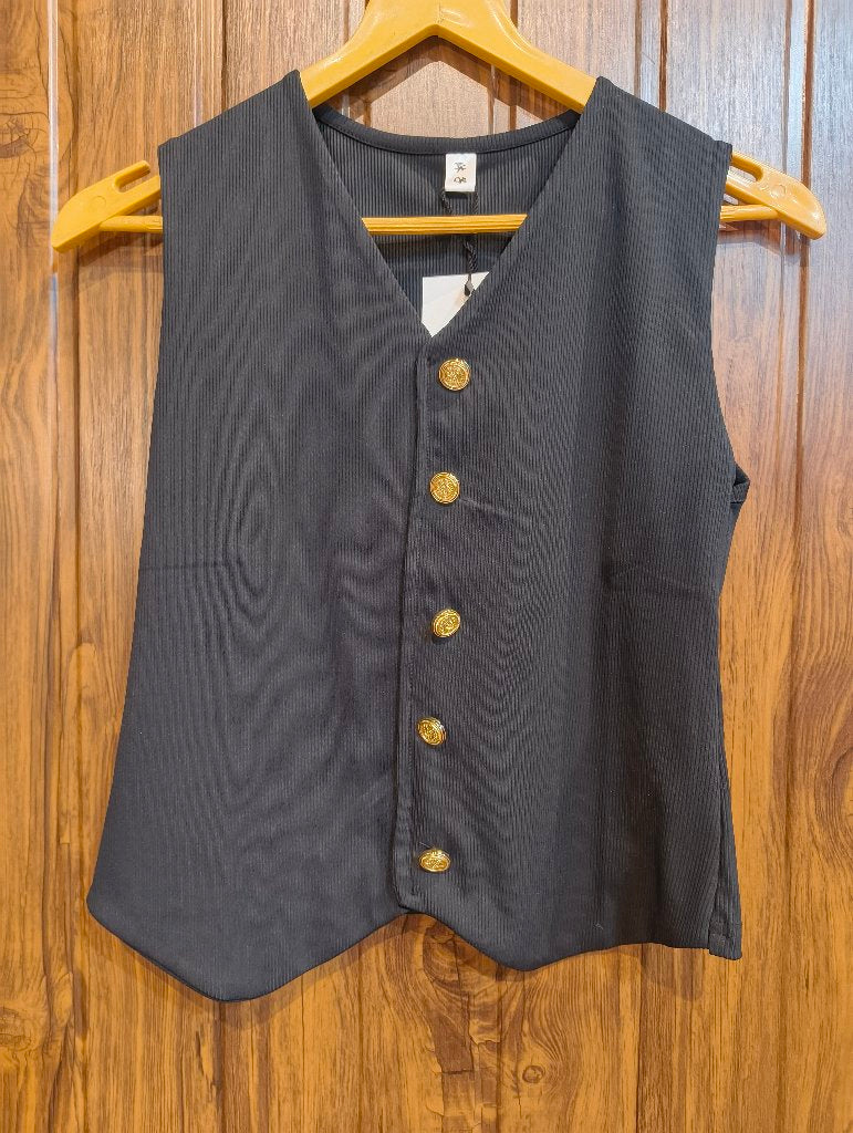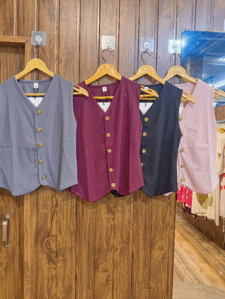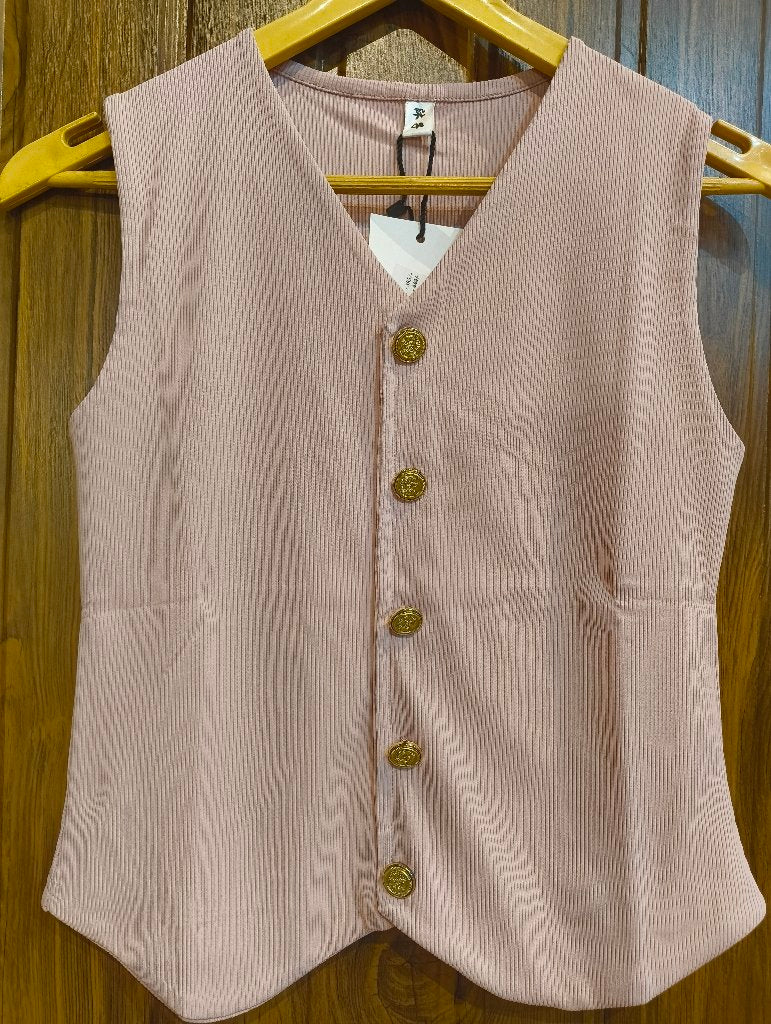 A stylish sleeveless vest featuring a button-up front, perfect for layering or wearing alone. Made from a comfortable fabric, this vest is designed to provide a chic and casual look. Available in multiple colors, it adds versatility to any wardrobe.