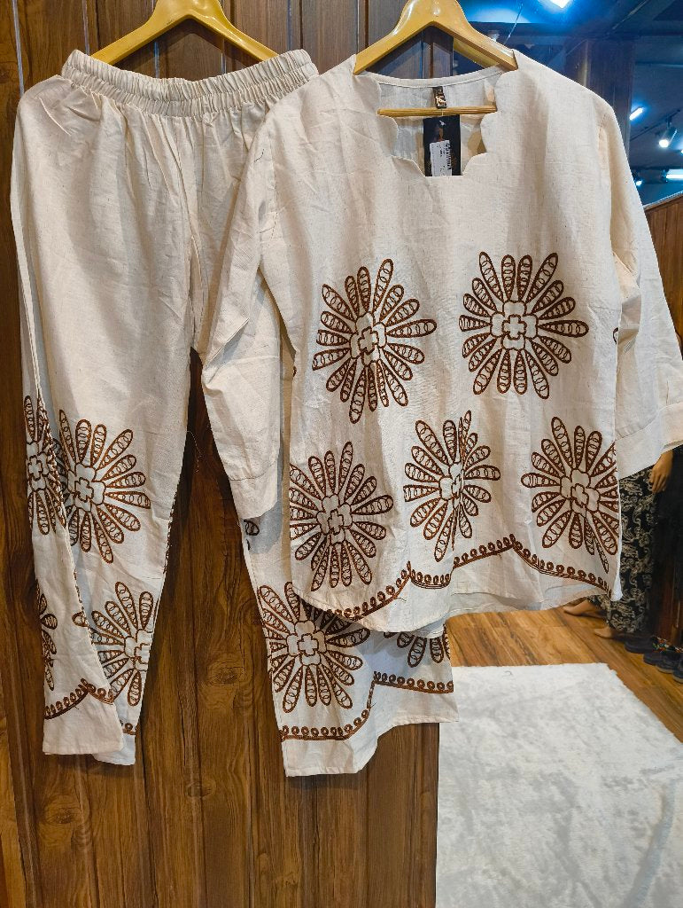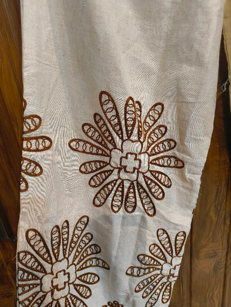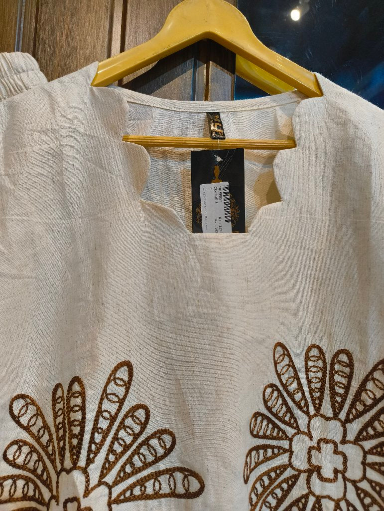 A beautifully crafted tunic featuring intricate floral embroidery in earthy tones. Made from lightweight fabric, this tunic is perfect for casual outings or relaxed gatherings. The unique design and comfortable fit make it a versatile addition to any wardrobe.