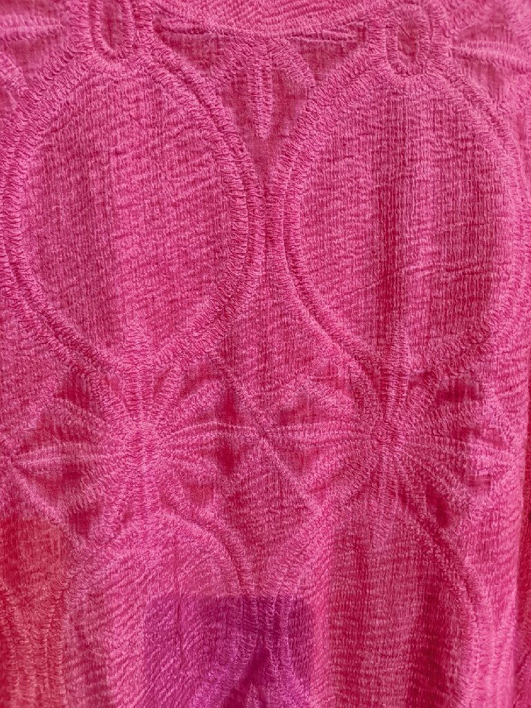 A pair of stylish short sleeve tops featuring intricate embroidery and a relaxed fit. Available in vibrant pink and soft purple, these tops are perfect for casual summer outings.