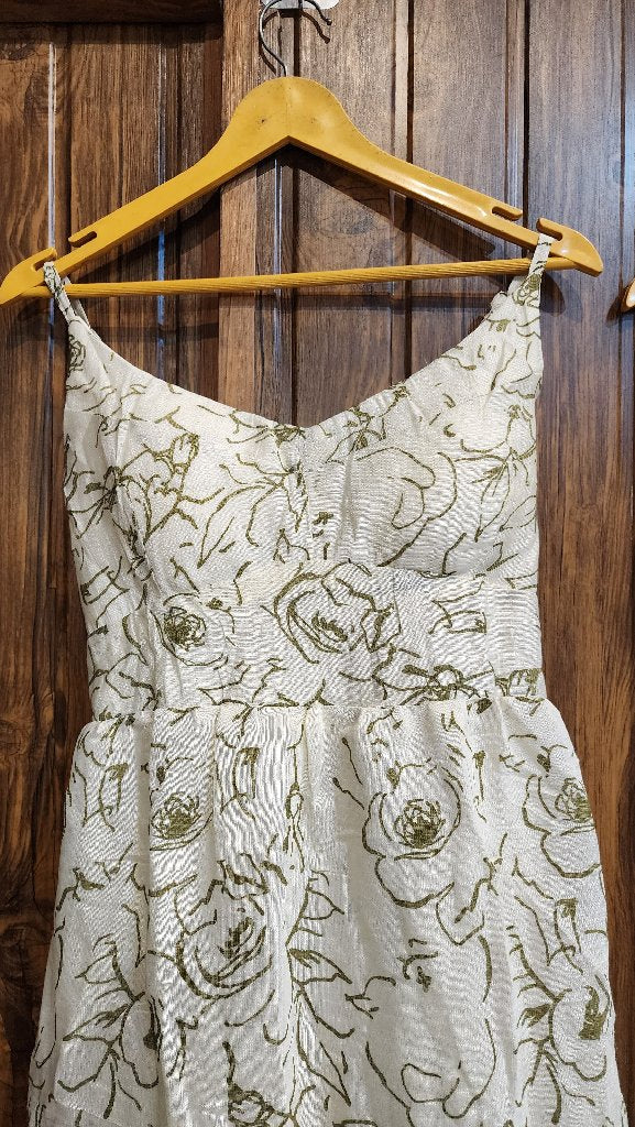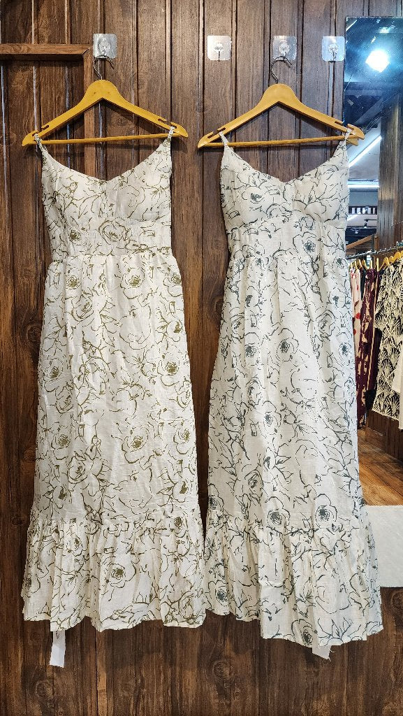 A beautiful floral print maxi dress featuring a delicate design with spaghetti straps and a flared hem. Perfect for summer outings or casual gatherings, this dress combines elegance with comfort.