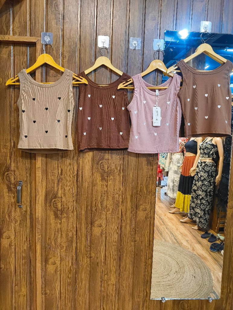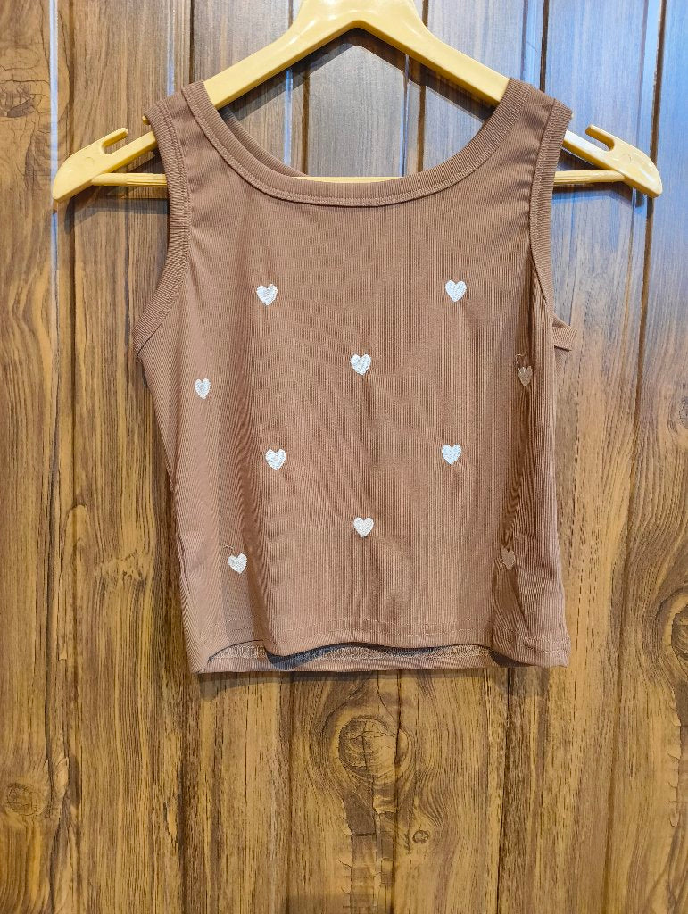 A stylish and comfortable sleeveless top featuring a ribbed texture and playful heart prints. Perfect for casual outings or layering under jackets during cooler days.