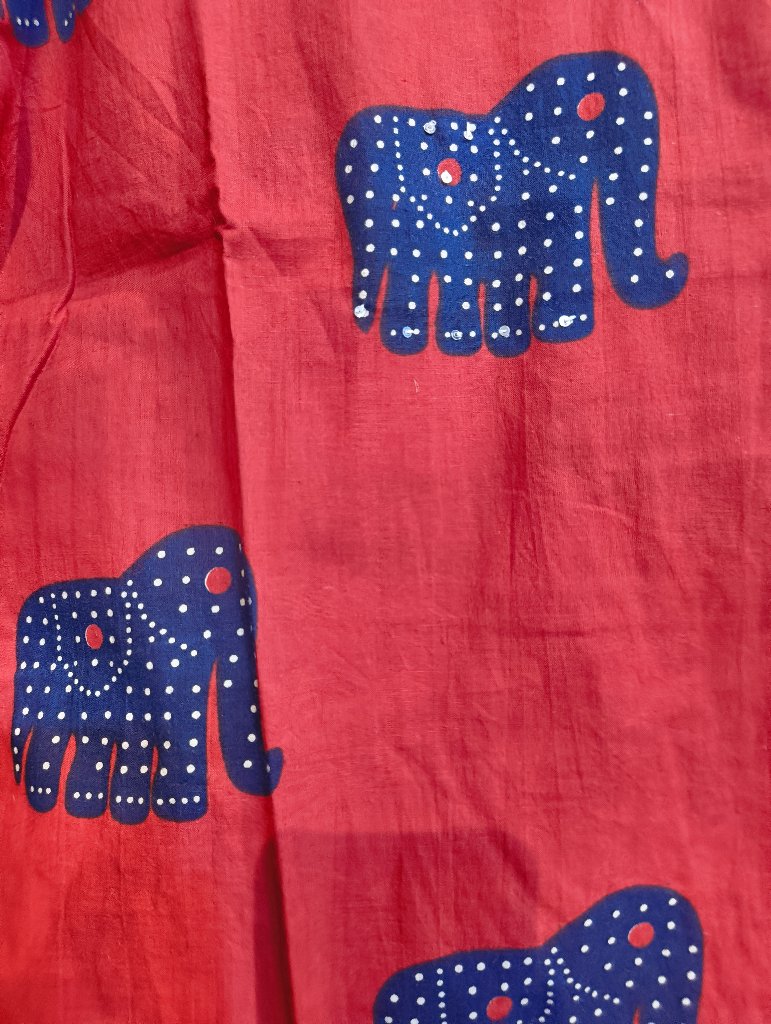 Red Elephant Print Kurta,Polka Dot Pants with dupatta